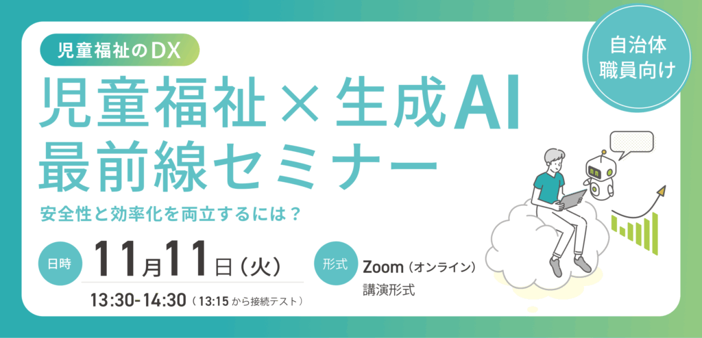 【申込受付中】11/11自治体職員様向けウェビナー「児童福祉×生成AI最前線セミナー〜安全性と効率化を両立するには?〜」を開催します